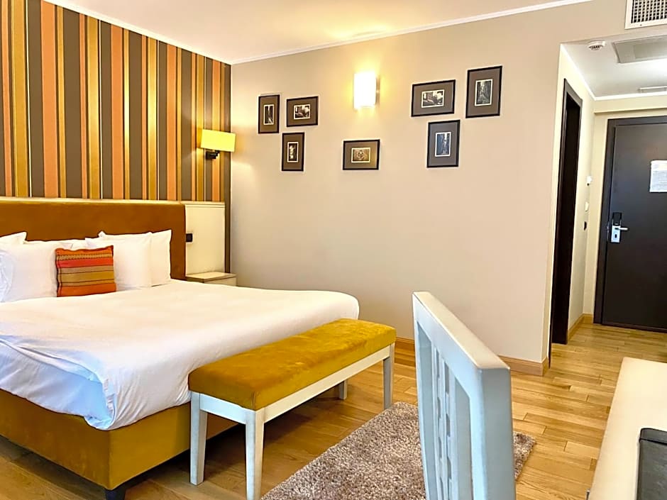 Executive Double Room successfully combines a bedroom, working and living areas.